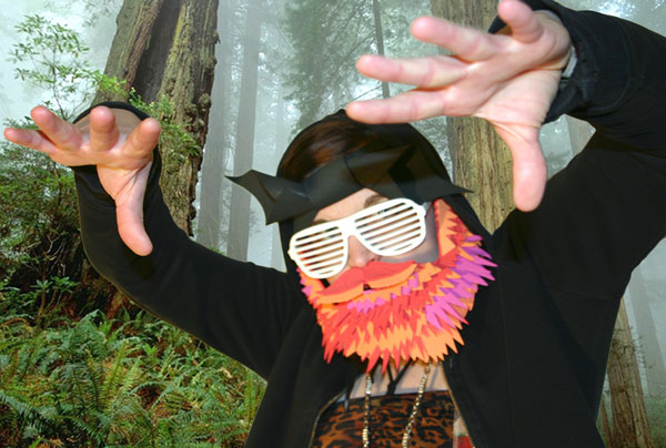The Hunter Rapper is a new hybrid, subcultural liquor rolling down the mountain like gold lava! Combining the subversive potential and flamboyant spectacle of urban hip hop and rural modern hunters, the Hunter Rapper upends the destructive excess, misogynistic dribble and uninspiring conventions of source cultures through transformative, artistic violence! This wild combination will be willfully created and unconcerned with authenticity, striving instead for fantastic solutions. HIKE UP YOUR SPANDEX AND START HIGH KICKING!!!!